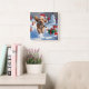 Relógio Quadrado Cockapoo correndo em neve com chapéu de Natal