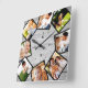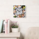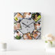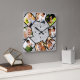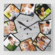 Relógio Quadrado Colagem de Fotografias da Família Cinza Rustic Chi