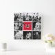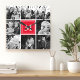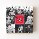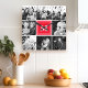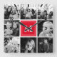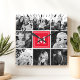 Relógio Quadrado Colagem de Fotos da Família do Monograma Vermelho