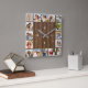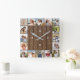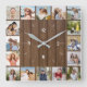 Relógio Quadrado Colagem de Fotos em Cercado de Madeira Marrom Fals