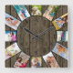 Relógio Quadrado Colagem de Fotos Personalizada 12 Madeira Escura R