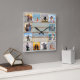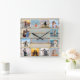 Relógio Quadrado Colagem de madeira com 12 fotos no Oceano Praia
