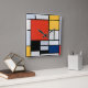Composição com Grande Plano Vermelho, Amarelo, Preto, Cinza e Azul (1921) de Piet Mondrian é uma composição de arte abstrata vintage que é assimétrica com um grande bloco dominante de cor, vermelho, que é equilibrado pela distribuição de blocos menores de amarelo, cinza azulado e branco. A composição tem linhas pretas grossas, horizontais e verticais, que delineiam os contornos dos vários retângulos de cor.
