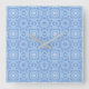 Uma mistura harmoniosa de padrões geométricos lineares que se assemelham a um horizonte calmo da cidade, adornada com formas deliciosas de estrelas e aberturas solares macios em tons azuis claros
