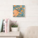Relógio Quadrado Contemporary Leaf Design in Peach