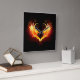 Coração de anjo com asas flamejantes em fundo preto.