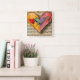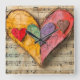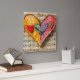 Um belo coração e um relógio quadrado de notas musicais estilizadas.