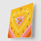 Design de rebentamento do coração. Camadas cardíacas em laranja, amarelo, rosa. Presentes de coração, decoração de casa.