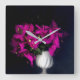 Relógio Quadrado Coração rosa no preto