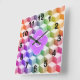 Relógio Quadrado Cotovelo-arco-íris sombreado 3D Cubos Liláticos Mo