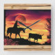 Ilumine a sua casa com este único "Um dos bons" Cowboy e o relógio de longhorn Steer Wall! Ela apresenta um cowboy cavalgando um cavalo, pastoreando um boi longo durante um lindo pôr de sol laranja...com Wood Borders!