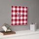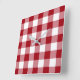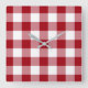 Relógio de parede quadrado com um clássico design de padrão verificado de gingham vermelho e branco. A decoração de casa está disponível.