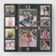 Photo collage clock to personalize with 10 of your favorite photos on a rustic wood background.