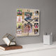 Relógio Quadrado Create Your Own 10 Photo Collage Natural Wood
