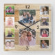Photo collage clock to personalize with 10 of your favorite photos on a rustic wood background.