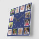 Relógio Quadrado Create Your Own 12 Family Photo Collage Blue