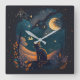 Relógio Quadrado Crie Seu Próprio Gato Místico Cênico Preto