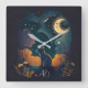 Relógio Quadrado Crie Seu Próprio Gato Preto Místico Sob Lua