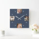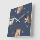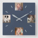 Relógio Quadrado Crie seu próprio Marinho moderno de 4 fotos azul