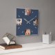 O relógio personalizado moderno apresenta 4 fotos quadradas nas posições 12, 3, 6 e 9 horas em um fundo azul marinho. As cinzas das cinzas marcam as outras posições de hora ao redor do relógio. Substitua facilmente as imagens de exemplo por suas na barra lateral.