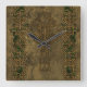 Uma cruz celta embutida em uma parede de pedra com as duas tiras dos nós celtas overgrown na hera verde.