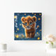 Relógio Quadrado Cubo de leão de olhos azuis encantado no brilho do