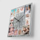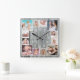 Relógio Quadrado Custom 12 Family Photo Collage Rustic Gray Wood