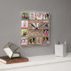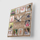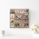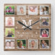 Relógio Quadrado Custom 12 Photo Collage Family Name Monogram Wood