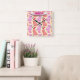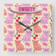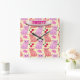 Relógio Quadrado Custom Cute Cat Cherry Floral Pattern