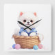 An adorable fluffy puppy sitting in a basket wearing a cute blue outfit. A soft and charming design perfect for dog lovers and kawaii fans.