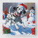 Um Dalmático avistado corre brincalhão através da cena de inverno nevado, vestindo um chapéu vermelho festivo de Natal. Este design vivo destaca o casaco distinto da raça, a personalidade enérgica e o espírito alegre enquanto capta o calor e a alegria da época de férias. Um cheio de charme festivo no inverno.