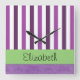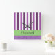 Relógio Quadrado Damasco Roxo, Stripes Roxas, Stripes Rachadas, Seu