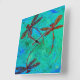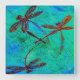 Lindas libélulas vermelhas, azuis e verdes dançam sobre um fundo turquesa malhado. Da minha trabalho de arte de libélula original.