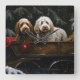 Relógio Quadrado Decado de Natal Cockapoo Snowy Sleigh