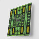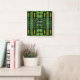 Relógio Quadrado Deco de Arte de Vidro Estido em Verde e Dourado