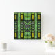 Um design de vidro colorido no estilo Art Deco. Estes padrões de vidro com chumbo e coloração brilham em cores, limão, amarelo, vermelho e verde. Luz brilhando através de uma vidraça translúcida de chumbo tem sido uma característica artística em lugares de culto ao longo da história.