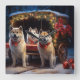 Relógio Quadrado Decoração de Natal de Akita Snowy Sleigh Ride