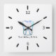 This sleek and modern wall clock is designed specifically for dental offices, featuring a prominent tooth graphic at its center. The clean white square face with minimalist black hour markers ensures easy readability. Personalized with the name "Tod Miller, D.D.S.," it adds a professional and welcoming touch to any dental clinic or office space.