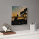 É sempre hora de viajar! Um belo relógio de parede com uma linda imagem por pôr do sol, tirado numa aventura 4WD na popular ilha Bribie, apresentando (o contorno) um canguru, uma árvore e as mundialmente famosas Montanhas da Casa de Vidro em Queensland, Austrália. O espetacular pôr do sol do ouro e o seu reflexo na água dão a cor do excelente da imagem. Isto não é apenas um relógio, é um pedaço de arte impressionante que vai iluminar qualquer espaço em sua casa. Esqueça o tempo e sonhe sobre a natureza incrível e a vida selvagem que a Austrália tem a oferecer!
