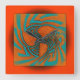 Relógio Quadrado Design abstrato flutuante em laranja com Aqua