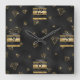 Relógio Quadrado Design de Diamante Preto e Dourado Elegante