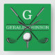 Relógio Quadrado Design de Monograma de Golfe Elegante