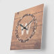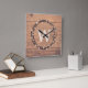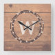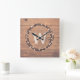 Design do monograma para o Natal com a decoração da grinalda e da neve no fundo de madeira rústico