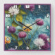 Relógio Quadrado Design Floral Colorida Com Folhas Vivas
