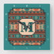 Relógio Quadrado Design Turquoise Terracotta Monograma