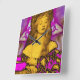 Elaboração digital de uma bela pintura pré-violeta de Cowper com fractais roxos cor-de-rosa. Mulher loura romântica de cabelos longos e elegante com pérolas brancas, flores úmidas, tecidos sofisticadas de ouro damasco de um antigo traje medieval...