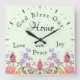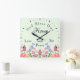 Relógio Quadrado Deus abençoe Nossa Casa Floral Floreal Verde