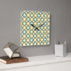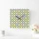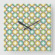 Relógio Quadrado Diamante retrô em padrão circular Azul Dourado