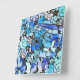 Música, flores e folhas compõem esta vibrante pintura que apresenta um padrão floral com uma mistura de tons azuis e contornos pretos. Diferentes tipos de flores e folhas, borboletas e notas musicais são bem acondicionadas para criar um design animado e decorativo.