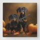 Relógio Quadrado Doberman Puppy Autumn Delight Pumpkin